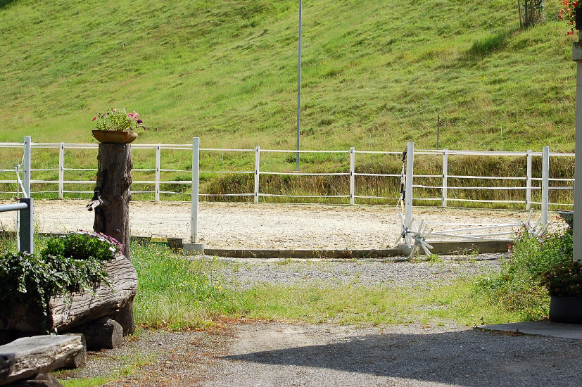 Alle Pensionäre dürfen zu jeder Zeit ihr Pferd auf dem schön gelegenen Longierplatz longieren oder einfach frei herumspringen lassen.